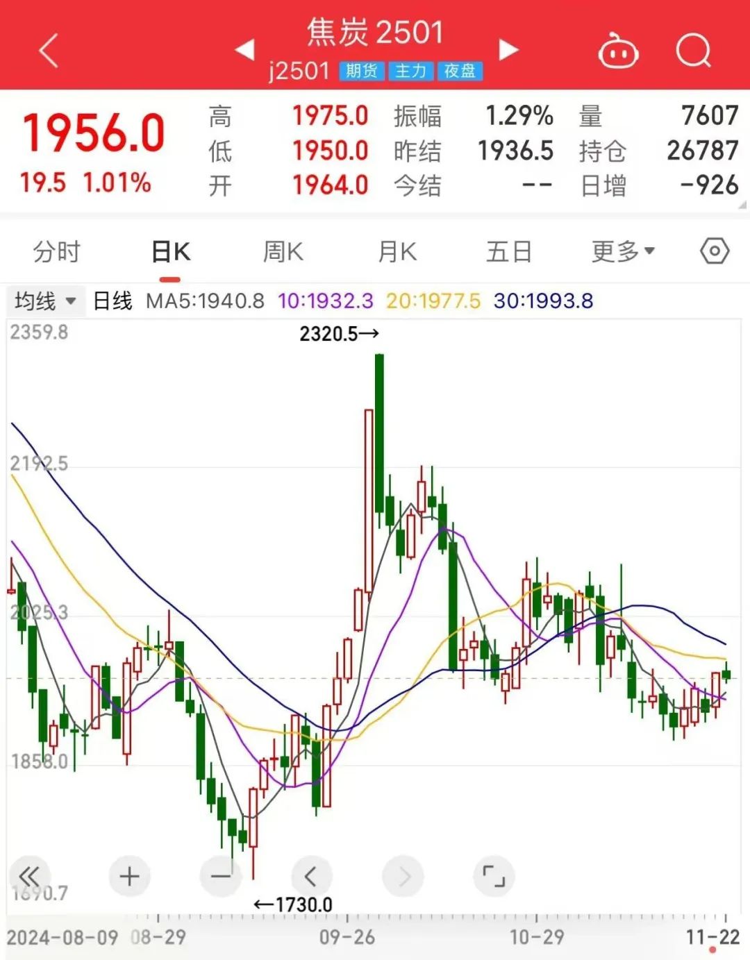 在刘慧峰看来,近期煤焦基本面偏弱的状貌有所改善,一方面,冬储补库启动以及铁水产量处于高位会阶段性加多煤焦需求;另一方面,11—12月宏不雅预期较强,市集对12月计策加码仍有期待。同期,当今焦煤、焦炭2501合约对现货仍有一定幅度的贴水,煤焦价钱短期将保管颤动偏强走势,合约间近强远弱状貌亦会延续。中期来看,钢材需求下行,“双焦”供应回升的状貌莫得改动,因此,在冬储补库完毕之后,展望煤焦价钱将重回下行走势。